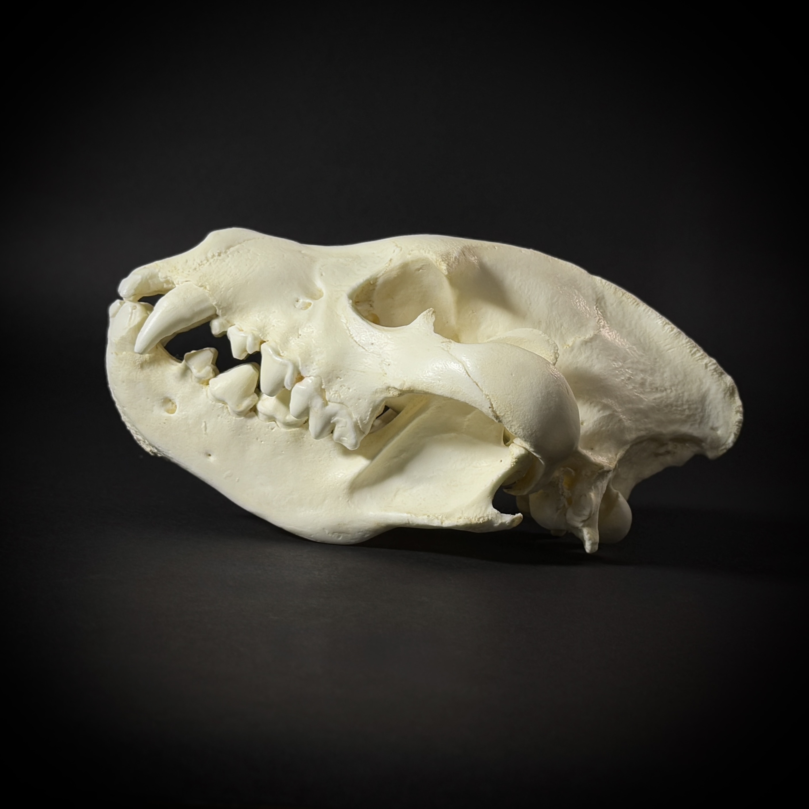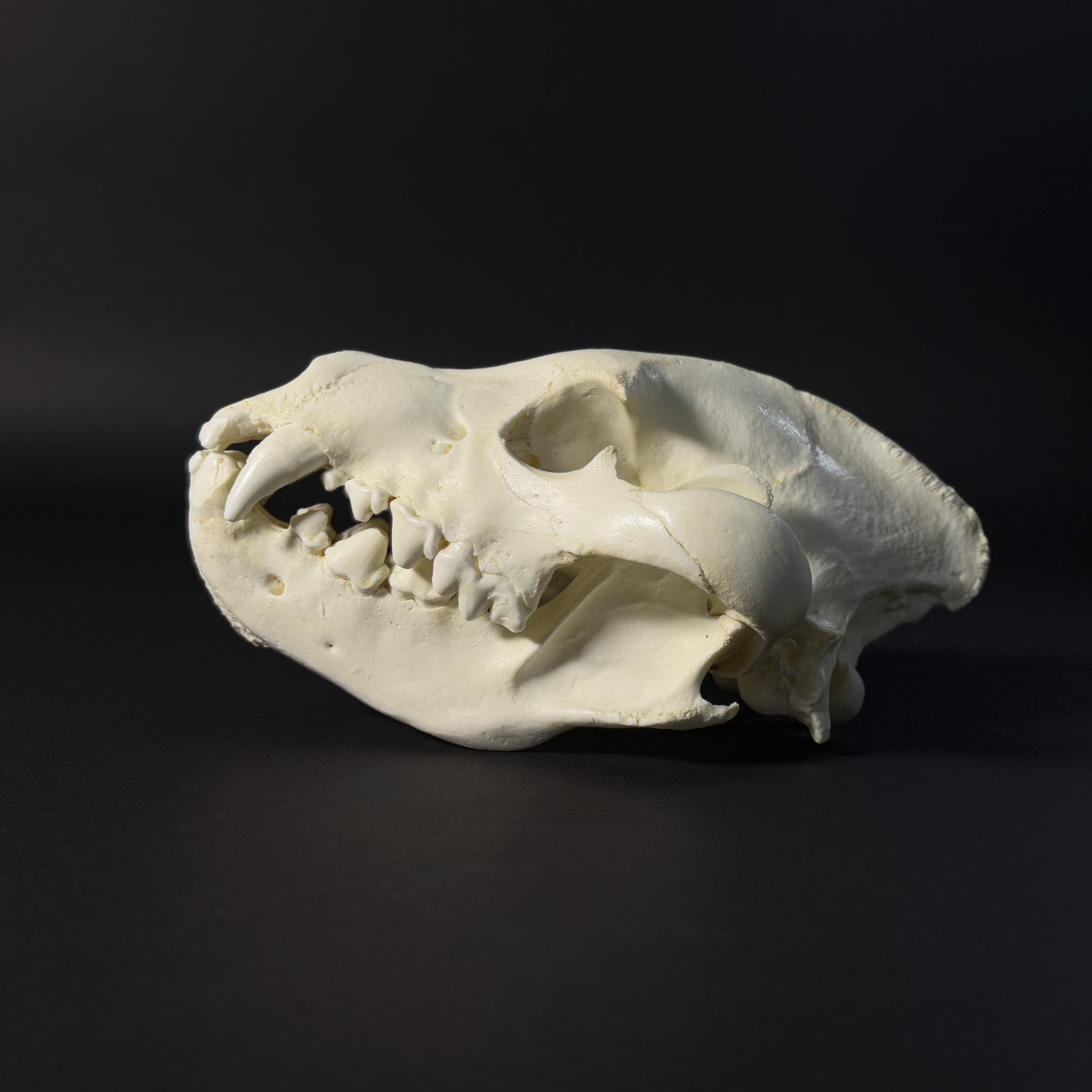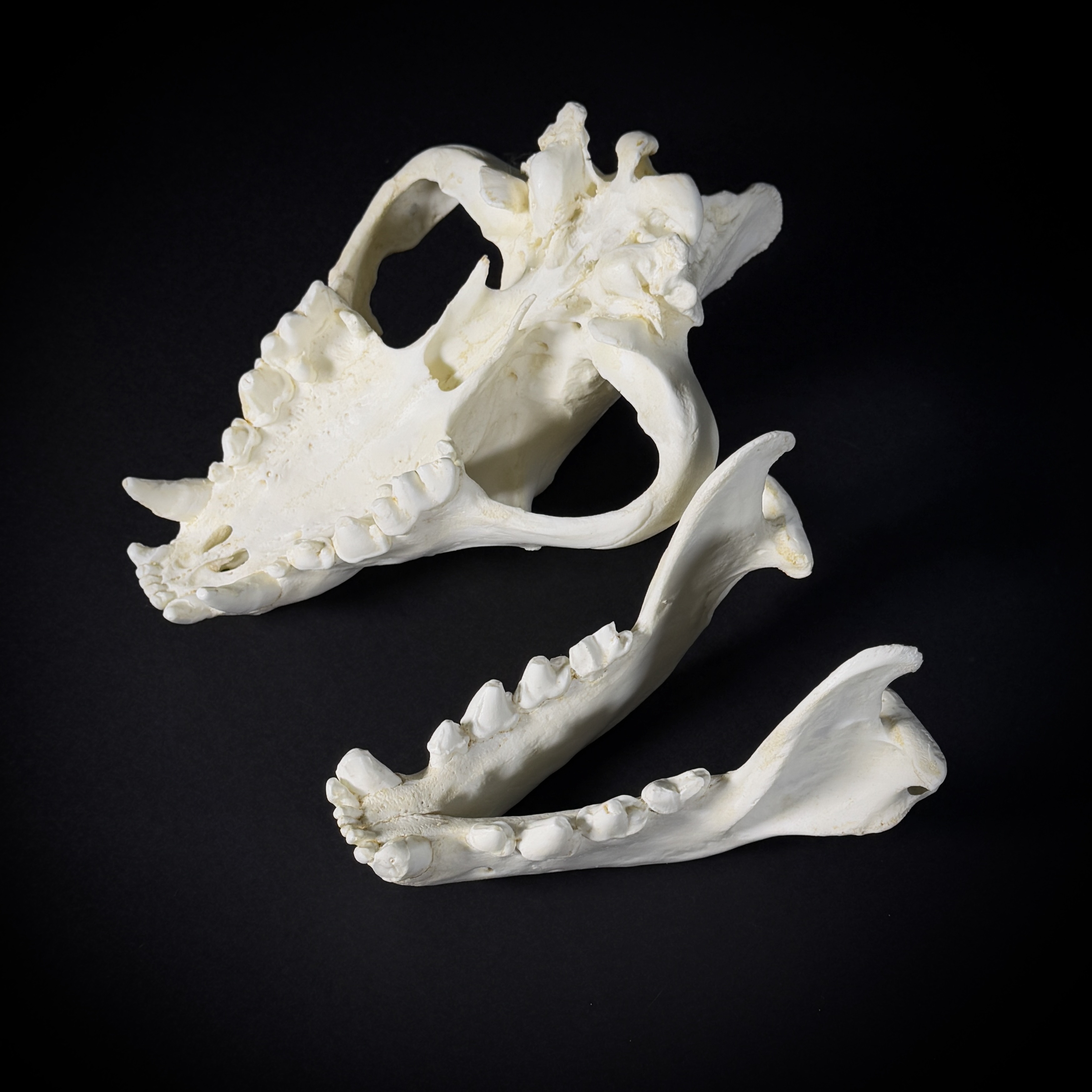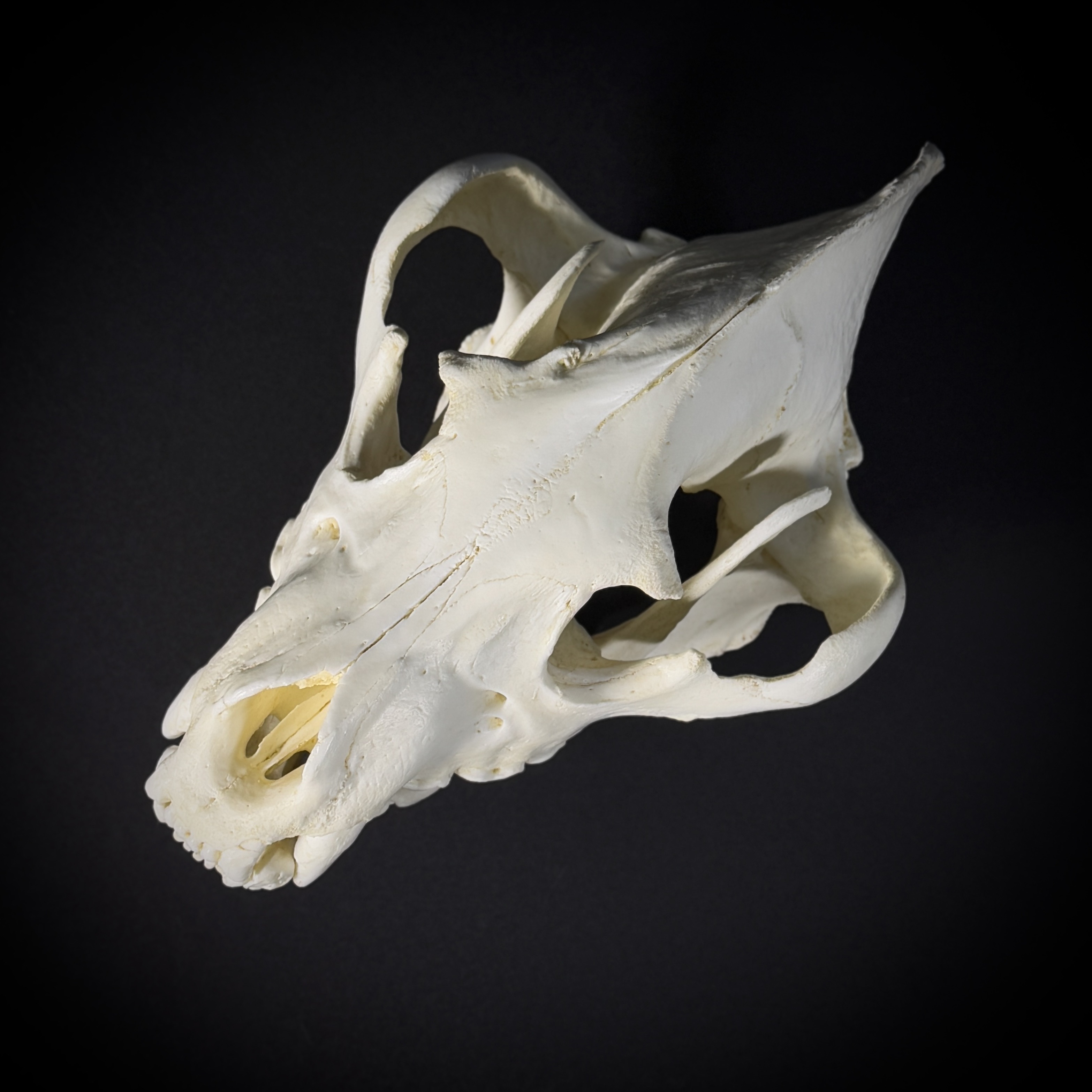 Гиперреалистичная копия с оригинала, полностью ручная работа, материал изделия пластик, легкий и прочный, точно повторяющий настоящий череп гиены. Масштаб черепа гиены 1:1. Размер черепа гиены - 25,5х16,8х12 см. Внимание! Череп имеет асимметрию естественного происхождения (см фото в анфас). Это прижизненная индивидуальная особенность особи, точно повторенная в нашей отливке.