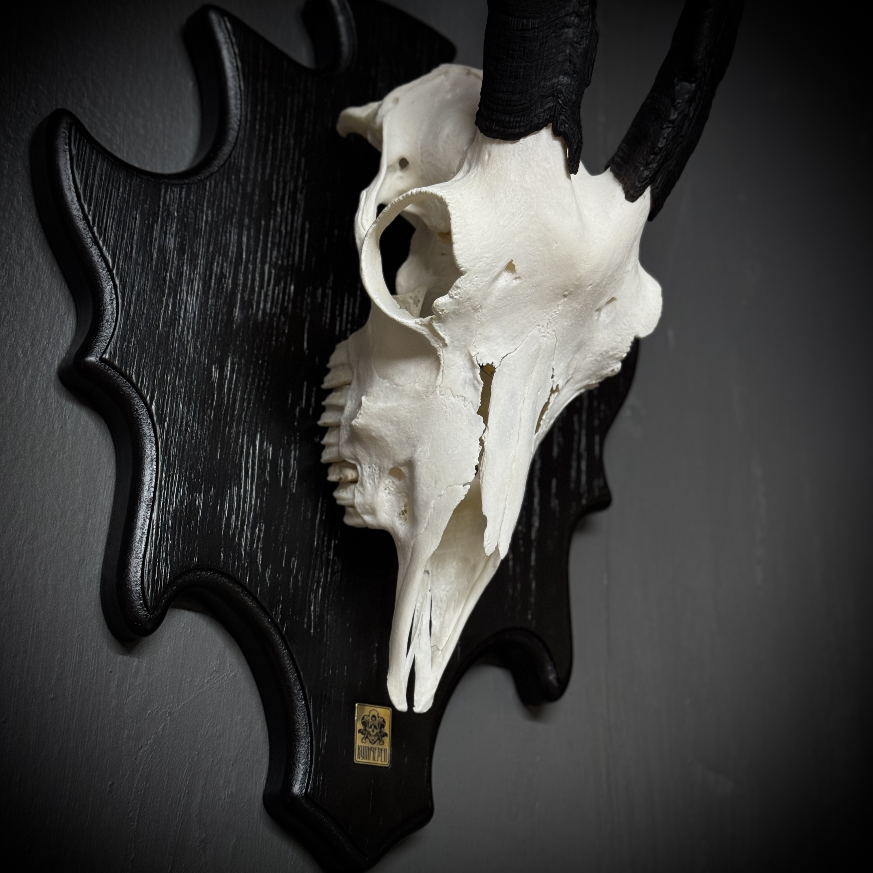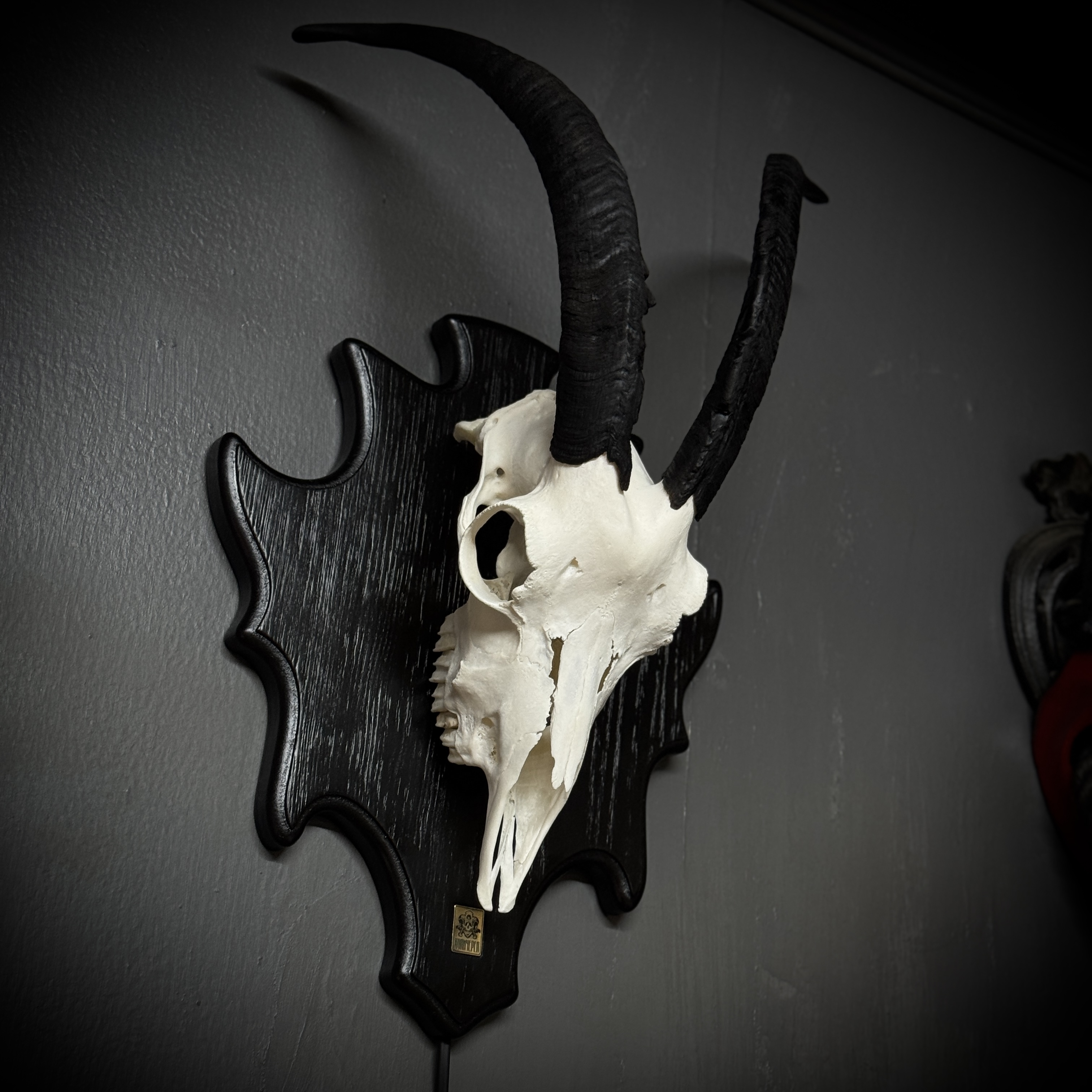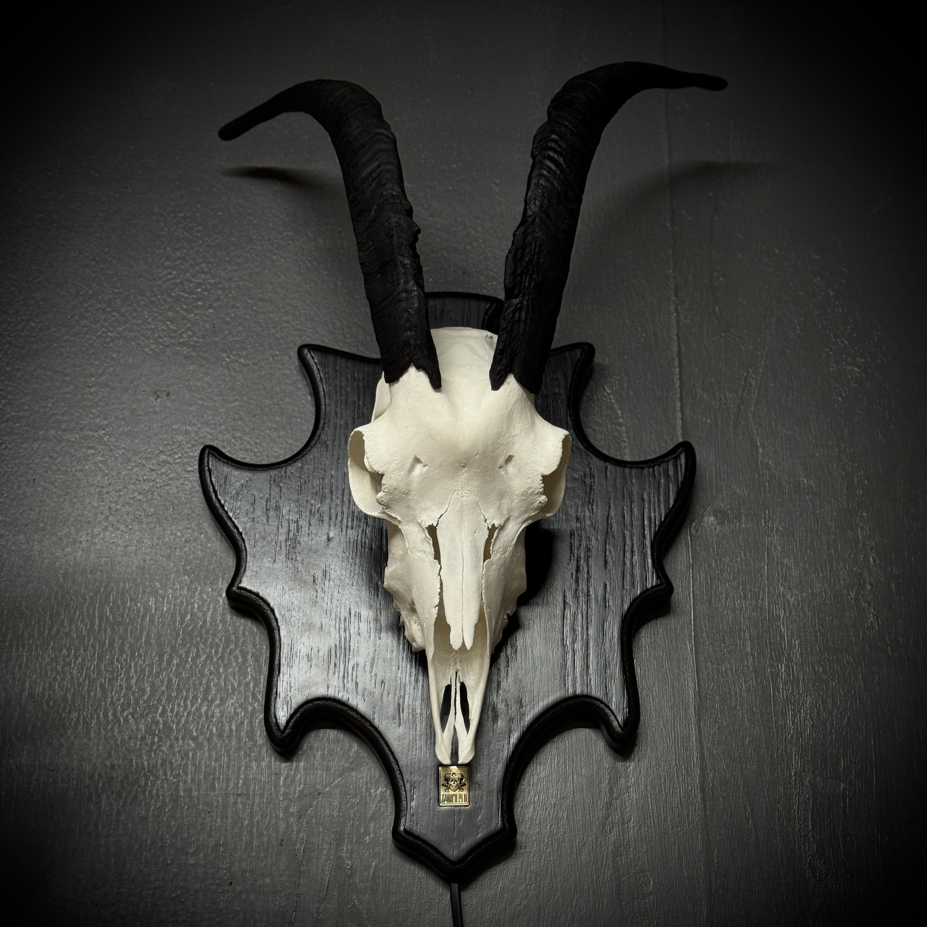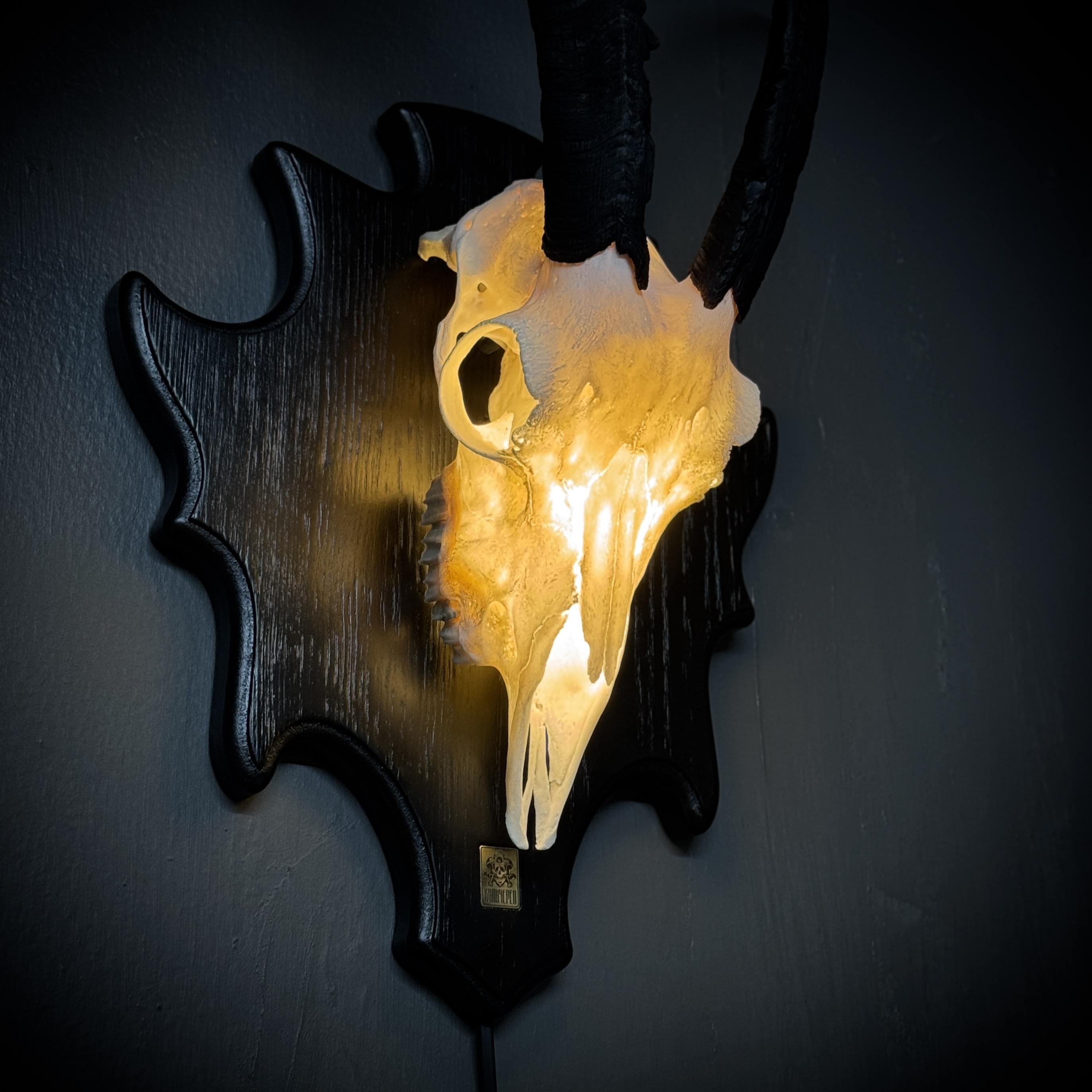 Череп козла на медальоне - ночник. Габариты изделия: размах рогов - 45 см, длина/глубина - 29/16 см. Подсветка - светодиодная лампа 3-4 Вт 220В, шнур 1,5 метра, выключатель на шнуре. Для безопасной транспортировки роговые чехлы съёмные. Фотографии наших изделий являются неотъемлемой частью описания товара, вы покупаете именно то, что видите на фото.