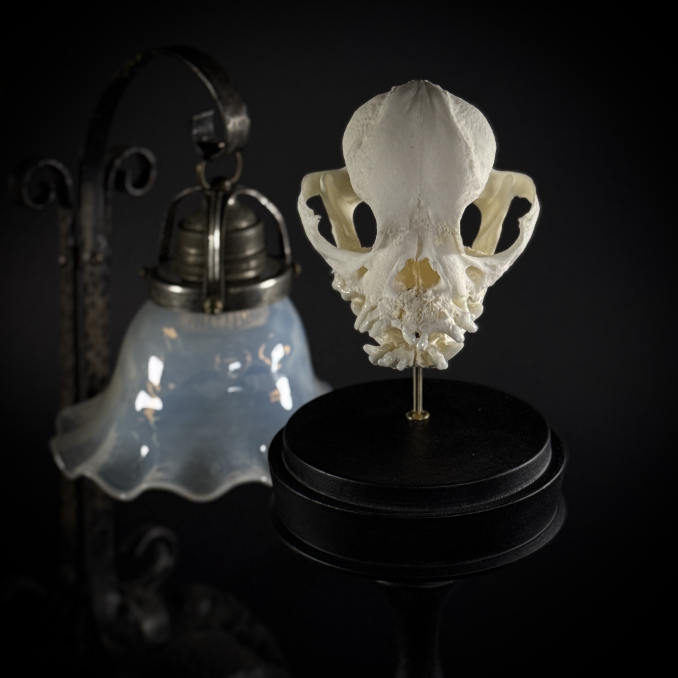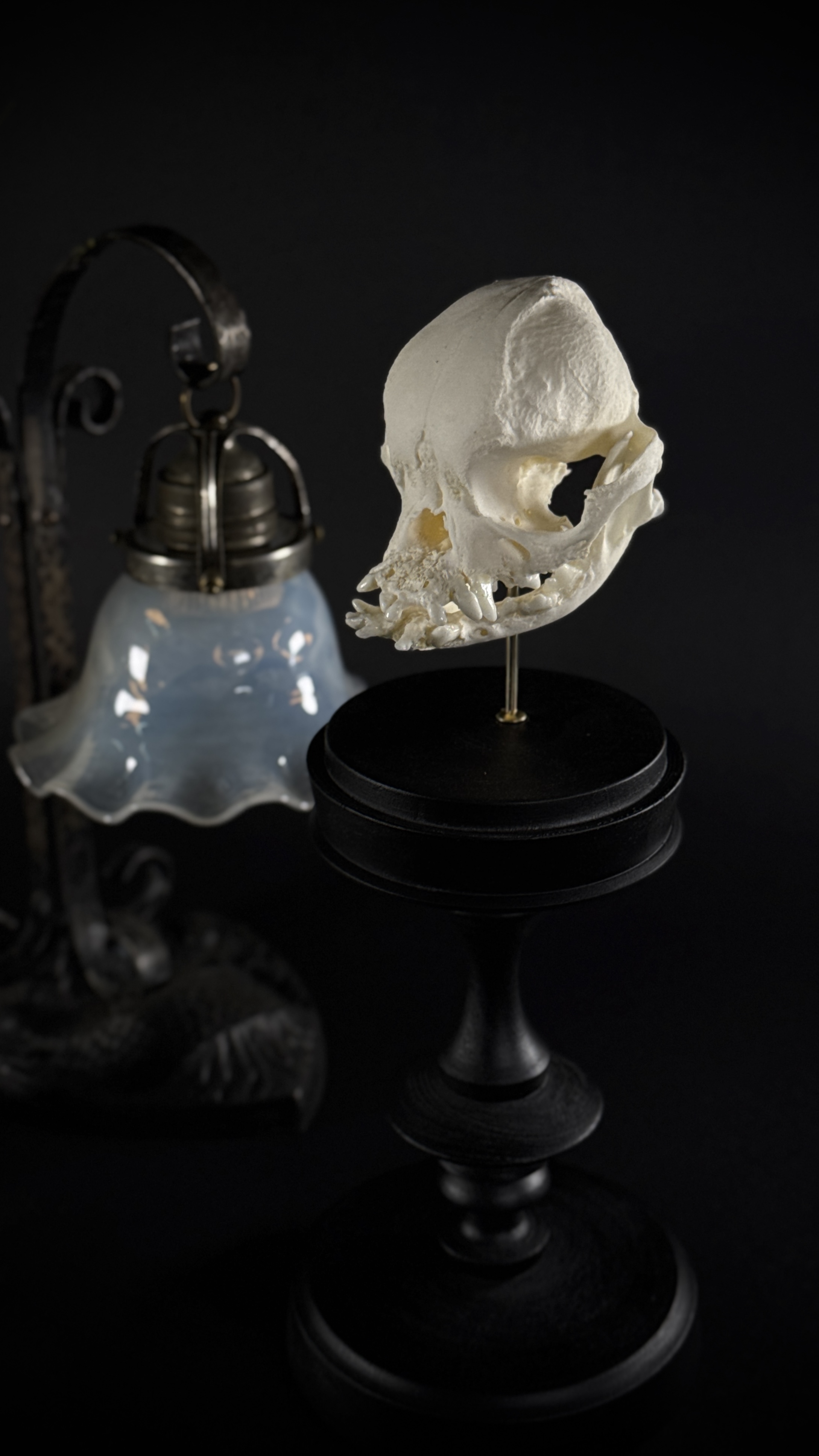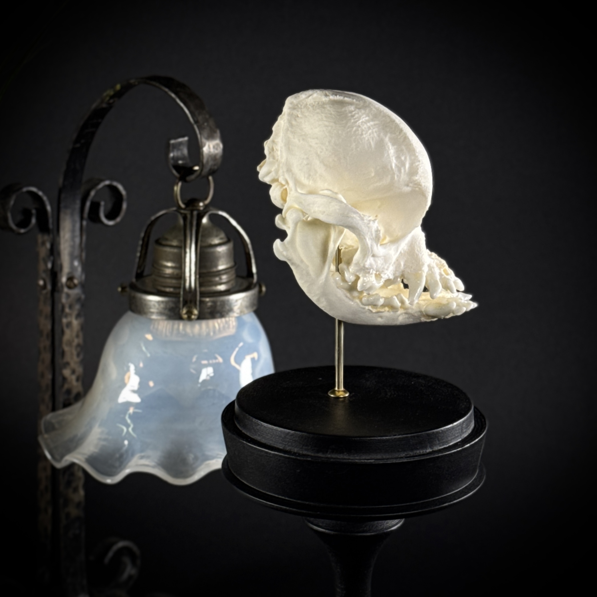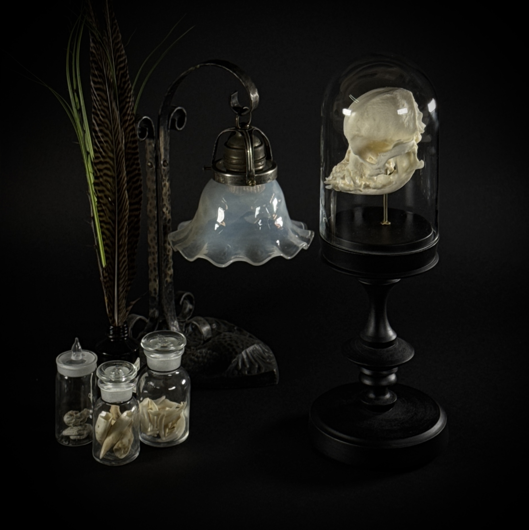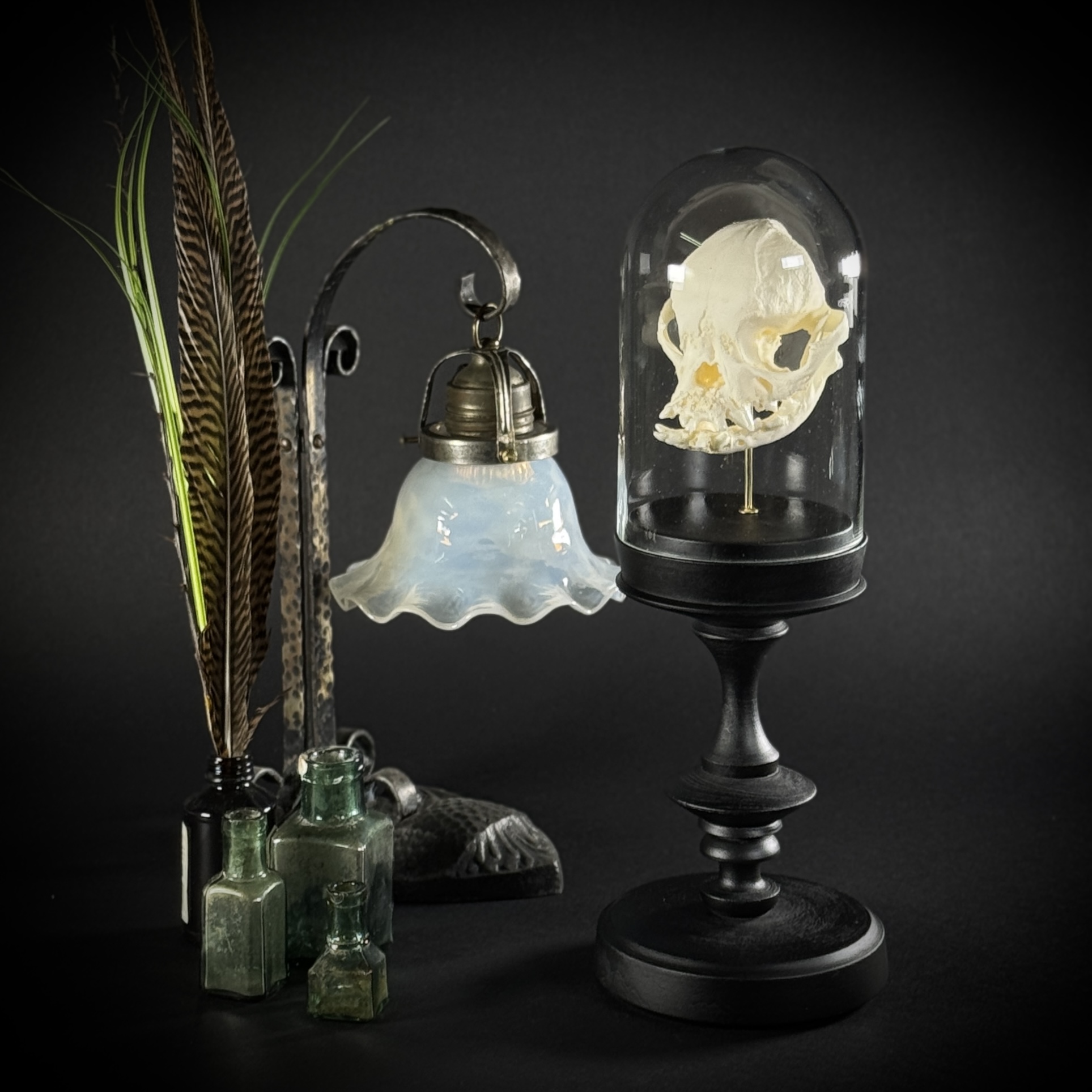 Череп очаровательно морса в высоком клоше. Клош высокий - 33 см. Материалы: настоящий череп мопса, дерево, латынь, стекло. Фотографии наших изделий являются неотъемлемой частью описания товара, вы покупаете именно то, что видите на фото.
