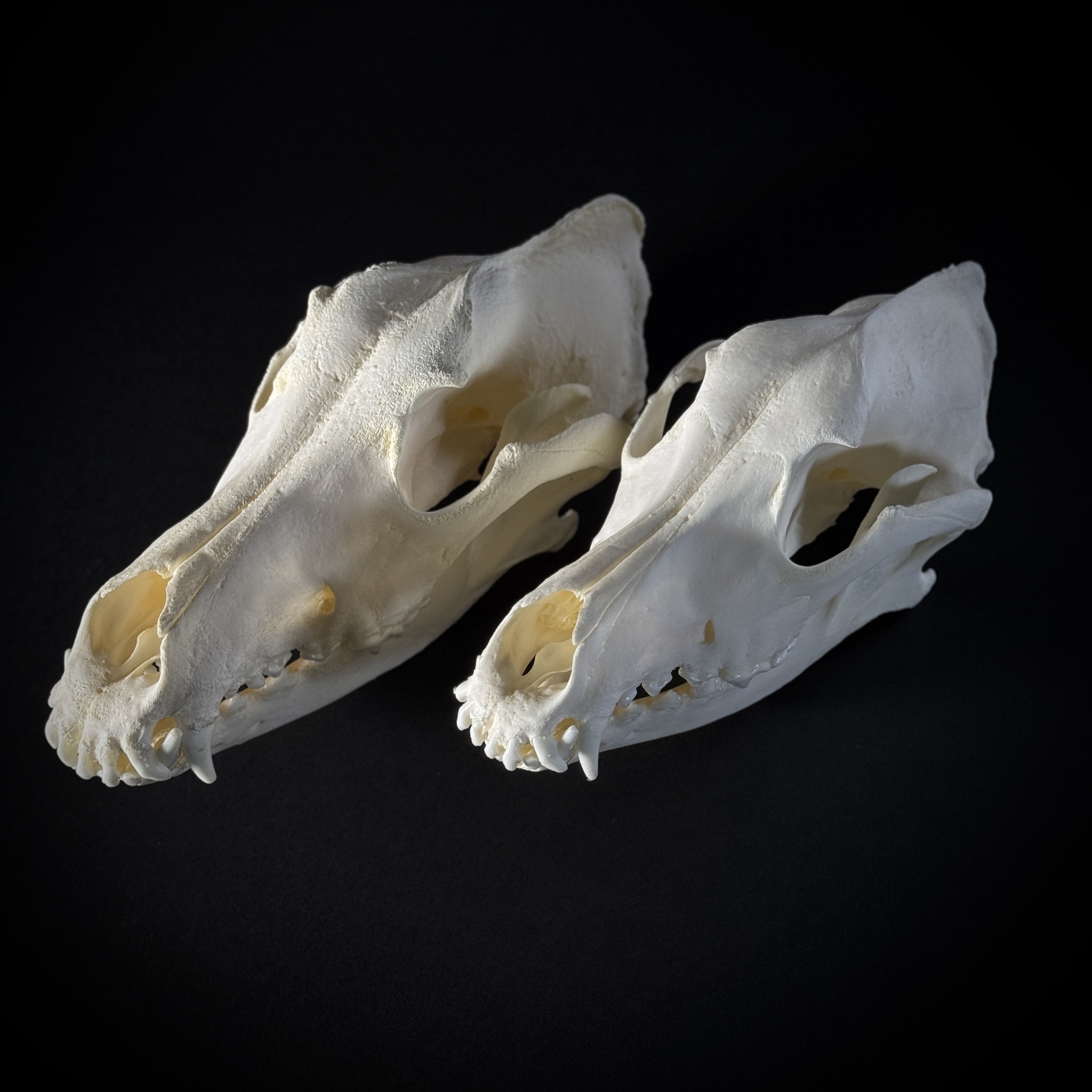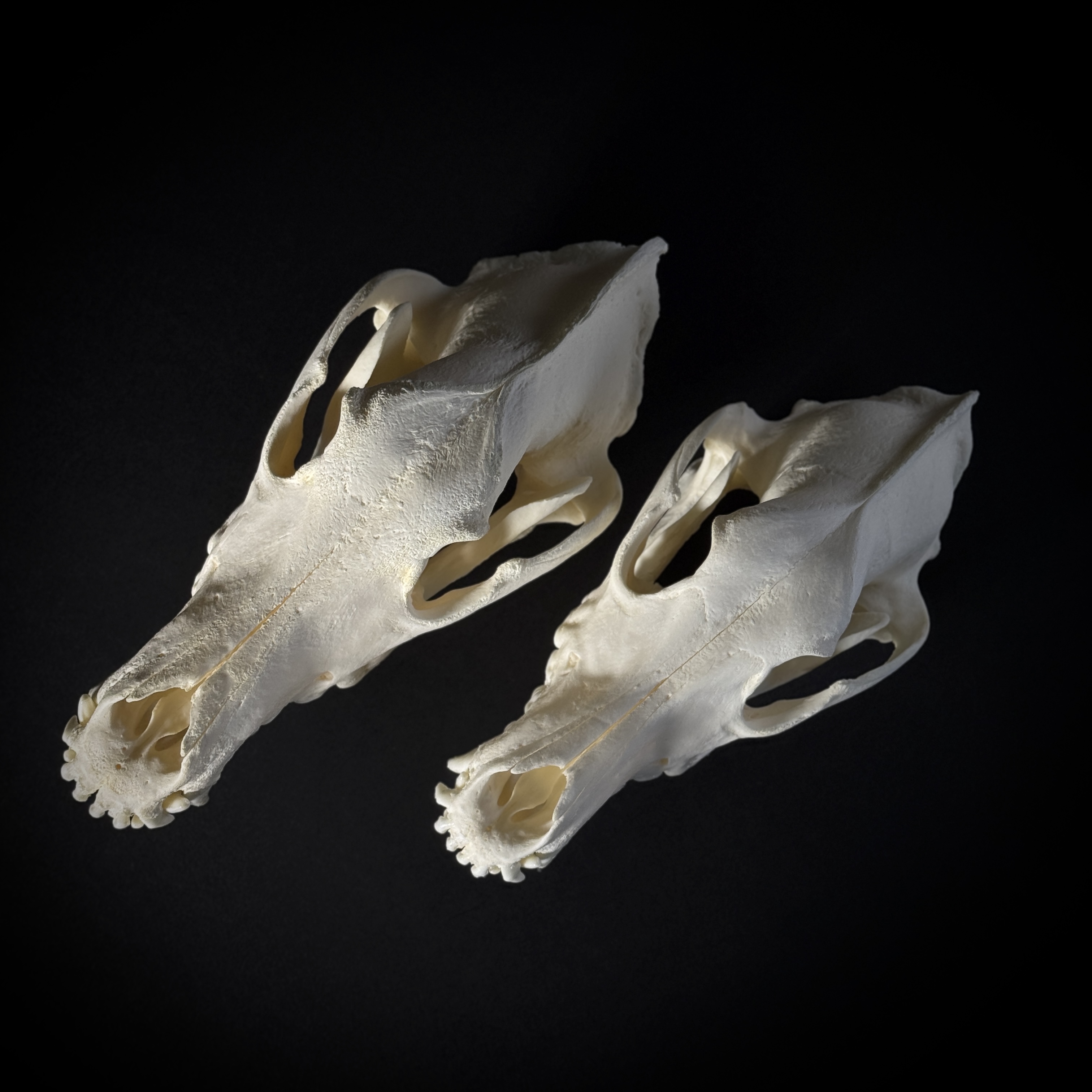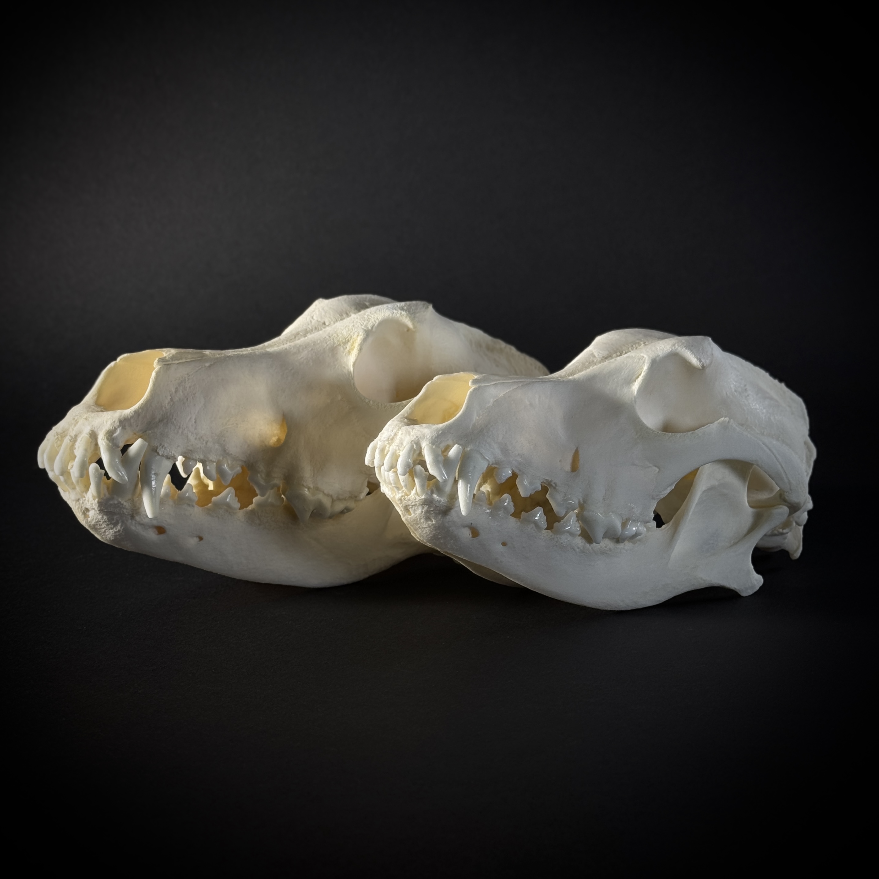 Пара доберманов (самец + самка). Габаритные размеры черепов: самец 27х12х11,5 см; самка 24х11,5х10 см. Достойное пополнение личной коллекции или в подарок коллекционеру. Фотографии наших изделий являются неотъемлемой частью описания товара, вы покупаете именно то, что видите на фото.